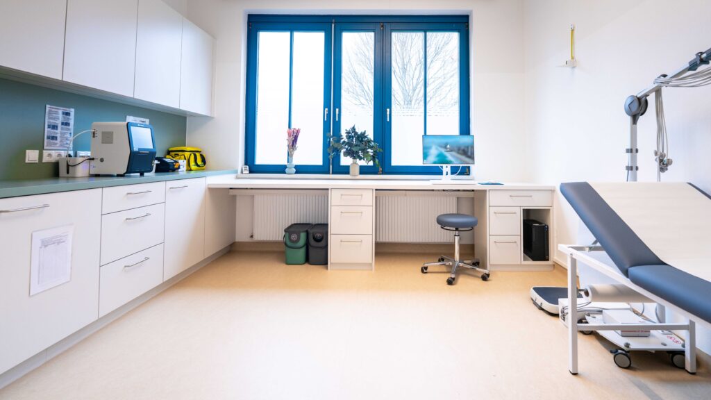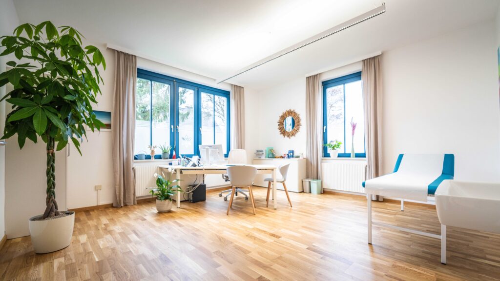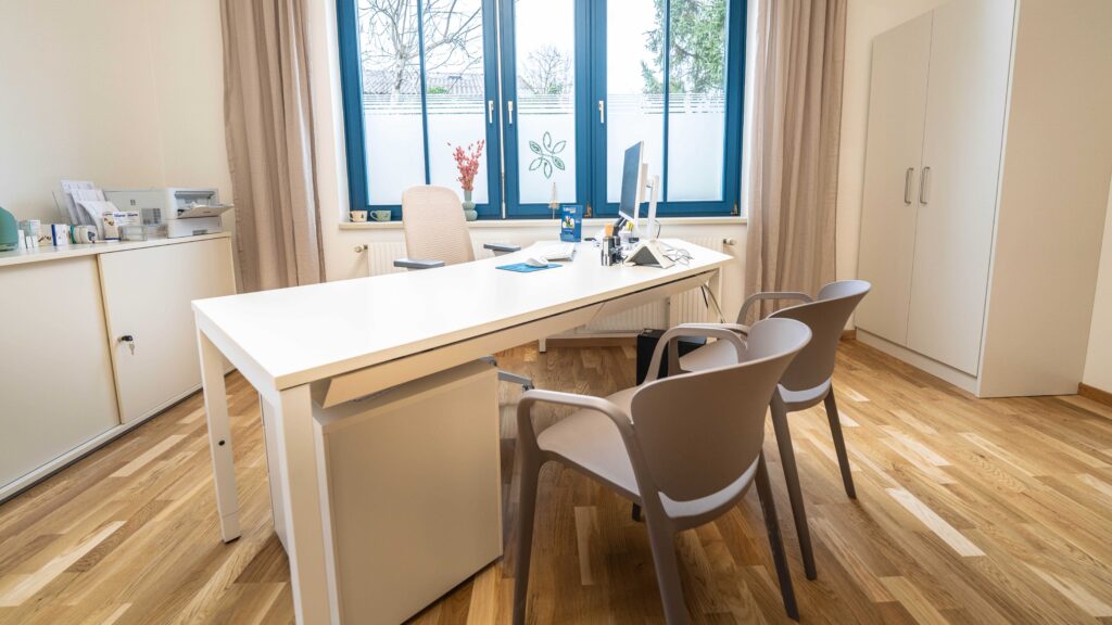 Wir arbeiten seit vielen Jahren als eingespieltes Team zusammen und verbinden hausärztliche Versorgung mit moderner Diagnostik und einem klaren medizinischen Anspruch. Die Praxis ist innen barrierefrei zugänglich und verfügt über helle, ruhige Räume.